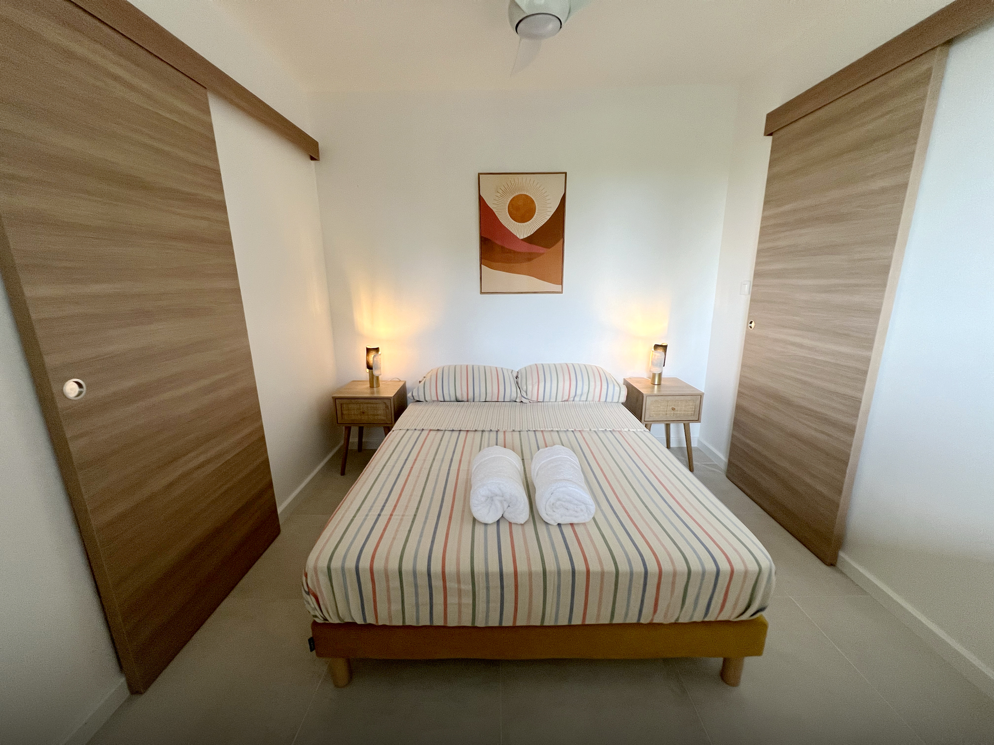 Chambre climatisée : Dormez au frais dans une chambre équipée d’un lit confortable et d’une climatisation silencieuse ainsi que d’un brasseur d’air.